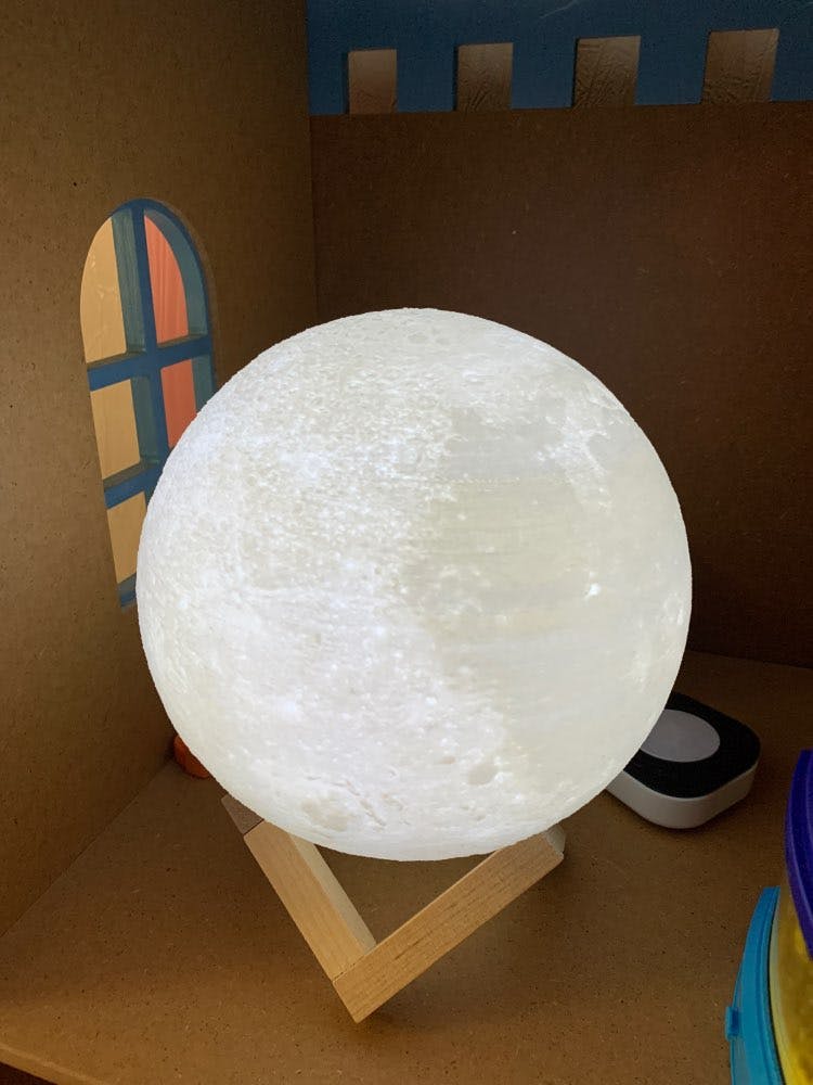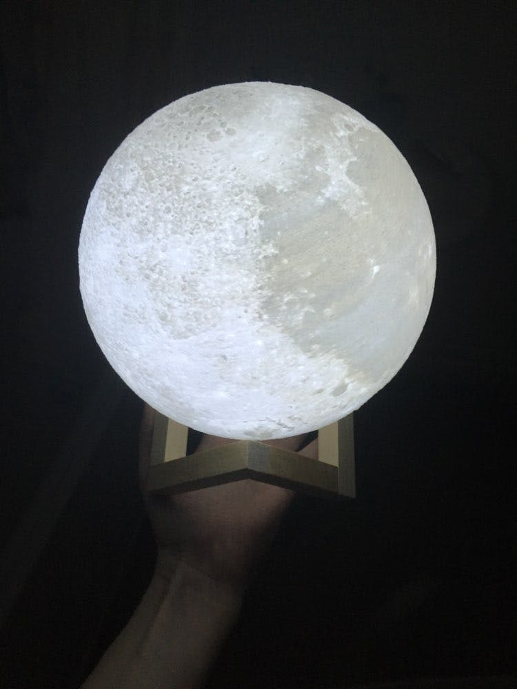 Each individual moon lamp is crafted through state-of-the-art 3D printing technology. The design is specifically crafted to accurately reproduce the surface and craters of our own moon!