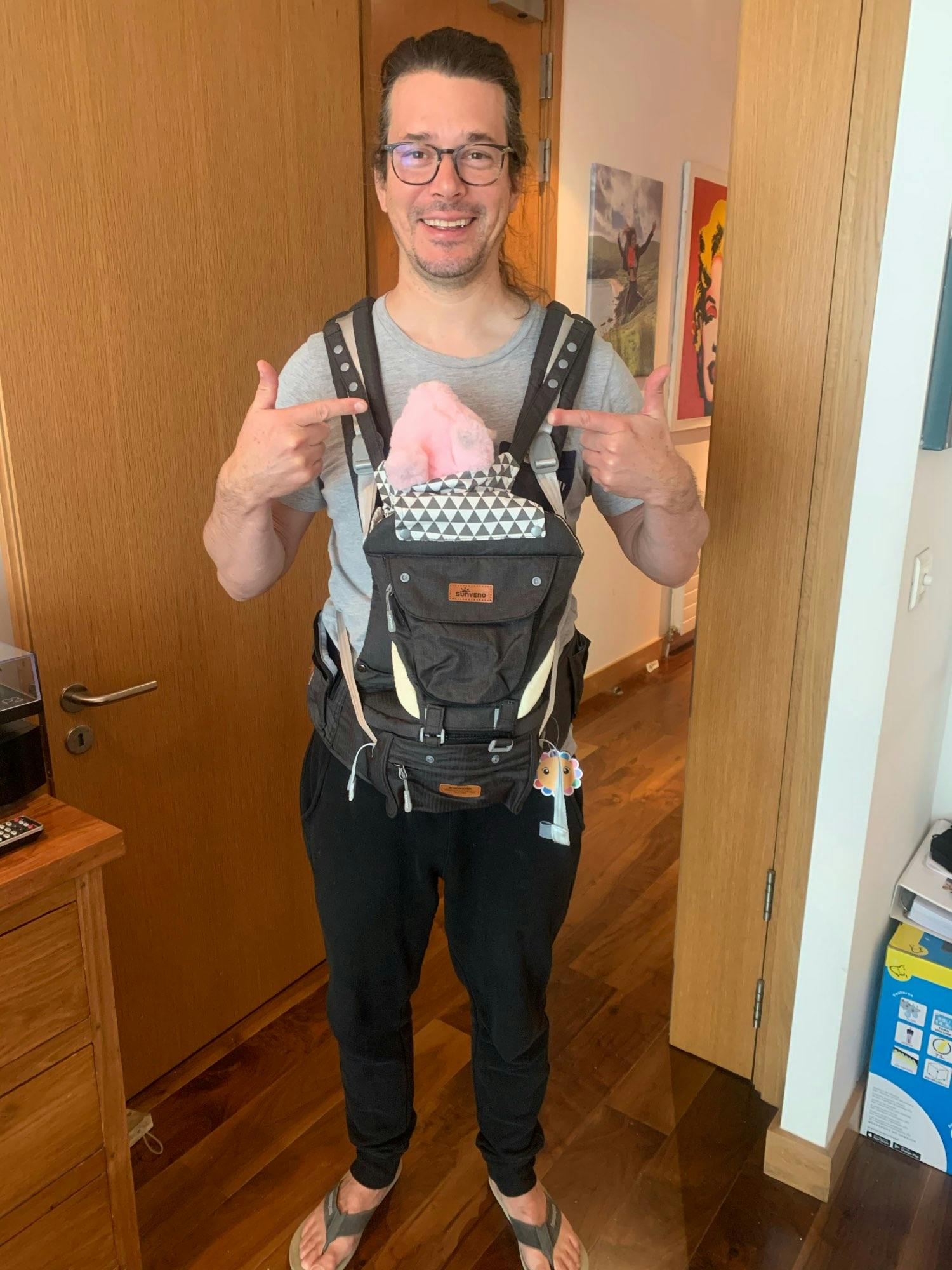 I did not have time to order hipsita, the next day the courier called and brought the parcel to the house. In the branded package is a branded box. You can also for a gift. The kangaroo itself is a qualitatively stitched thing, with plastic fasteners. Everything is adjustable and attached. Cloth is dense. Many pockets for small things. Wide belt with plastic shelf. Soft and comfortable straps. Instruction in Russian language to help. As a gift, a holder for a rodent or nipples. The child is delighted. But the thing is only for children who already sit. We're not sitting yet, so we have everything ahead of us! Happy. Let's see how to operate. Definitely recommend. I did not communicate with the seller, there was no need.